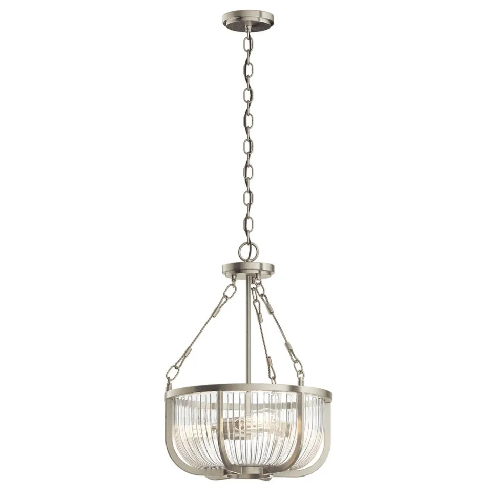 Elegante Vintage Pendelleuchte aus Metall und Riffelglas für Esszimmer und Wohnzimmer