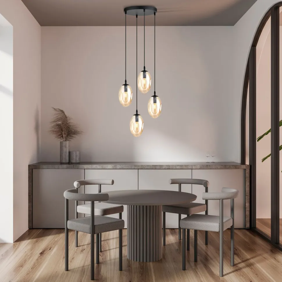 Dekorative Pendelleuchte mit extravagantem Rauchglas Lampenschirm