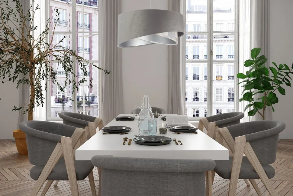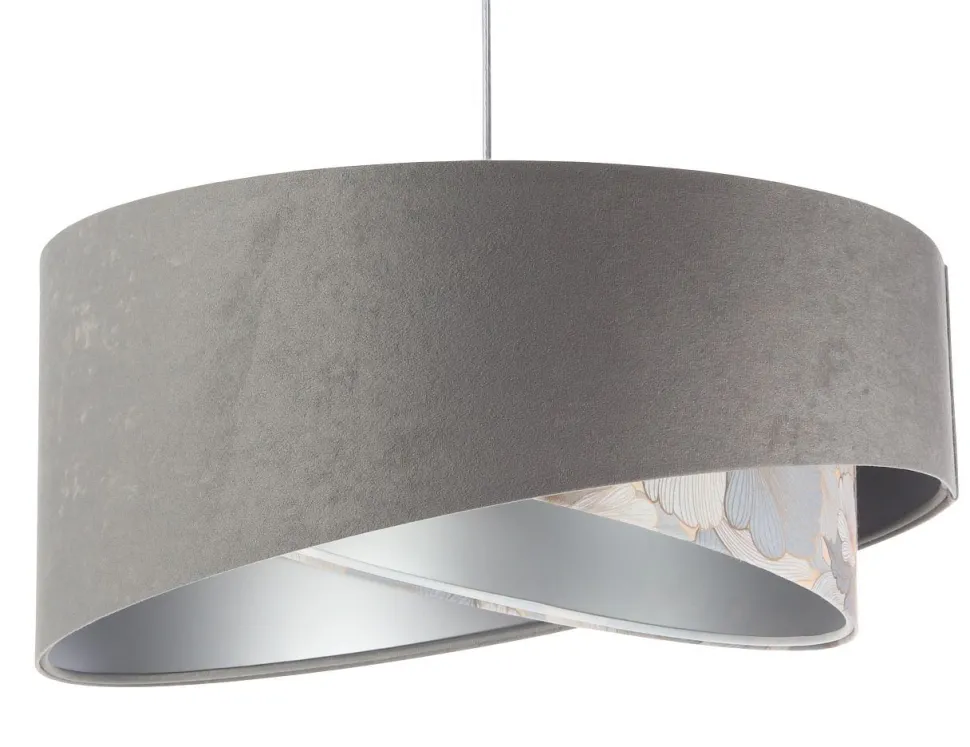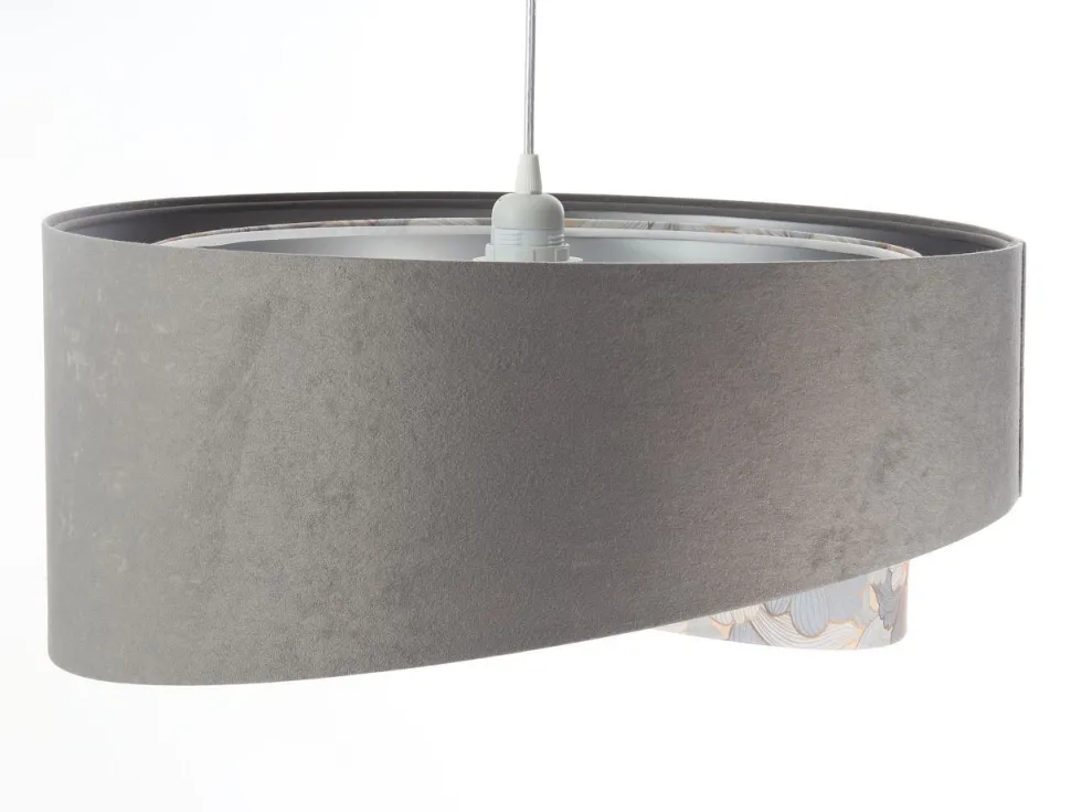 Elegante Pendelleuchte in Grau, Beige, Silber mit abstraktem floralen Print für Wohnzimmer, Schlafzimmer und Esszimmer