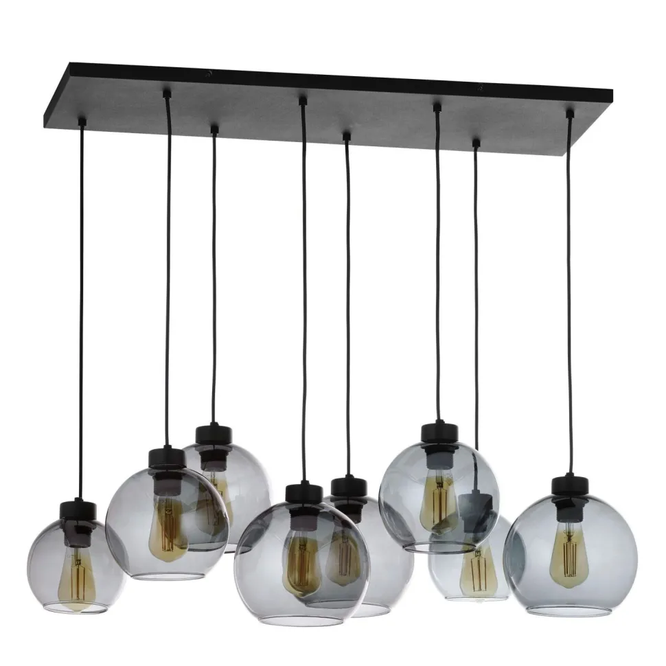 Die 8 Pendel sind versetzt angeordnet, sodass die Hängeleuchte eine breite Grundfläche bildet – perfekt für große Räume oder über einem breiten Esstisch