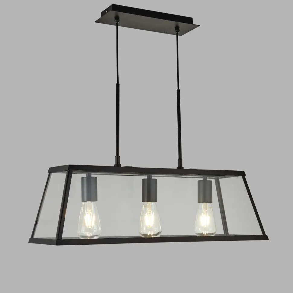 Das klare Glas sorgt für eine direkte Beleuchtung und macht aus der Hängelampe einen besonderen Blickfang in Wohnzimmer, Esszimmer und Küche