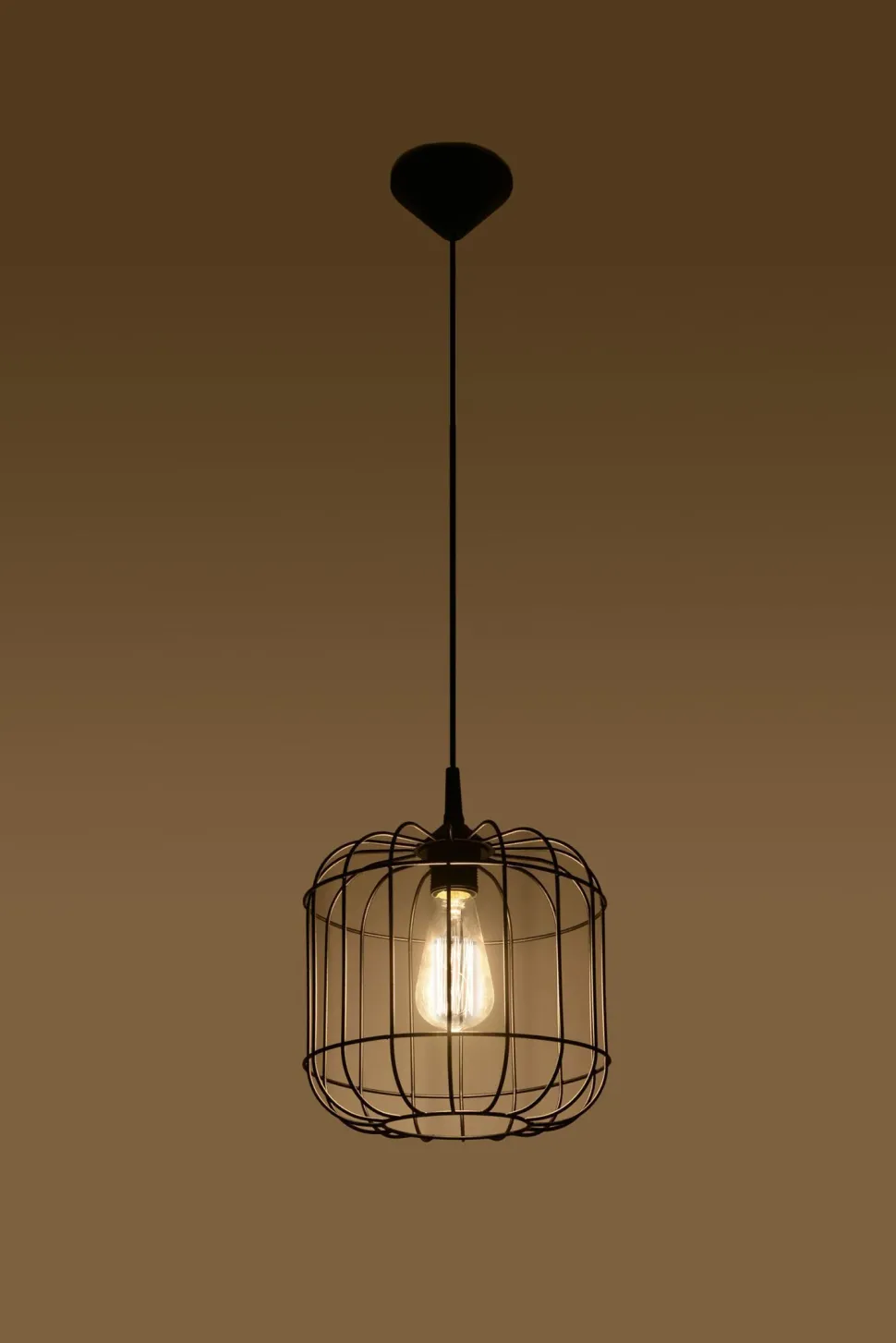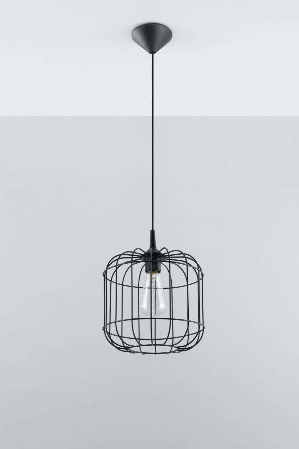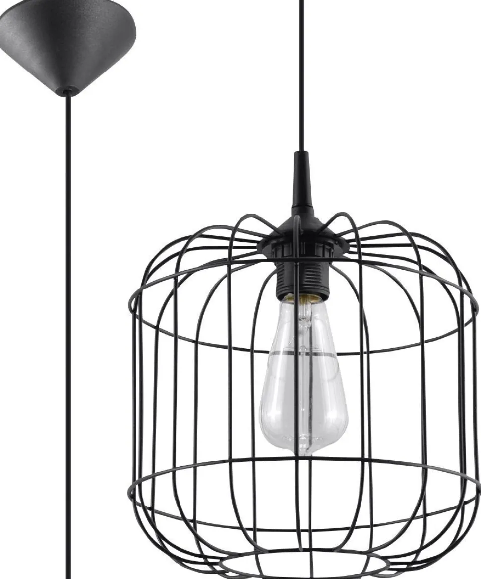 Retro Hängelampe mit Drahtschirm in Schwarz