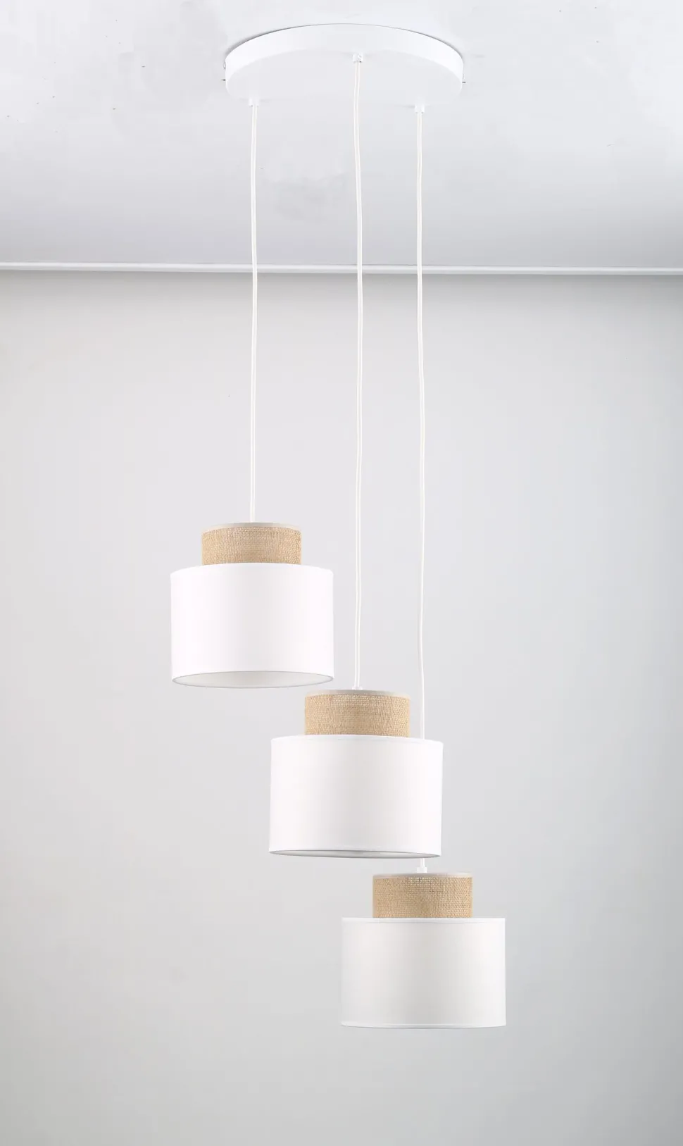 Wohnliche Pendelleuchte in Weiß und Natur für Schlafzimmer, Wohnzimmer und Esszimmer