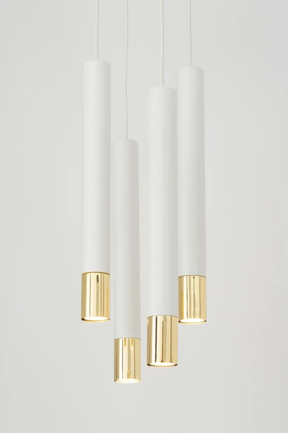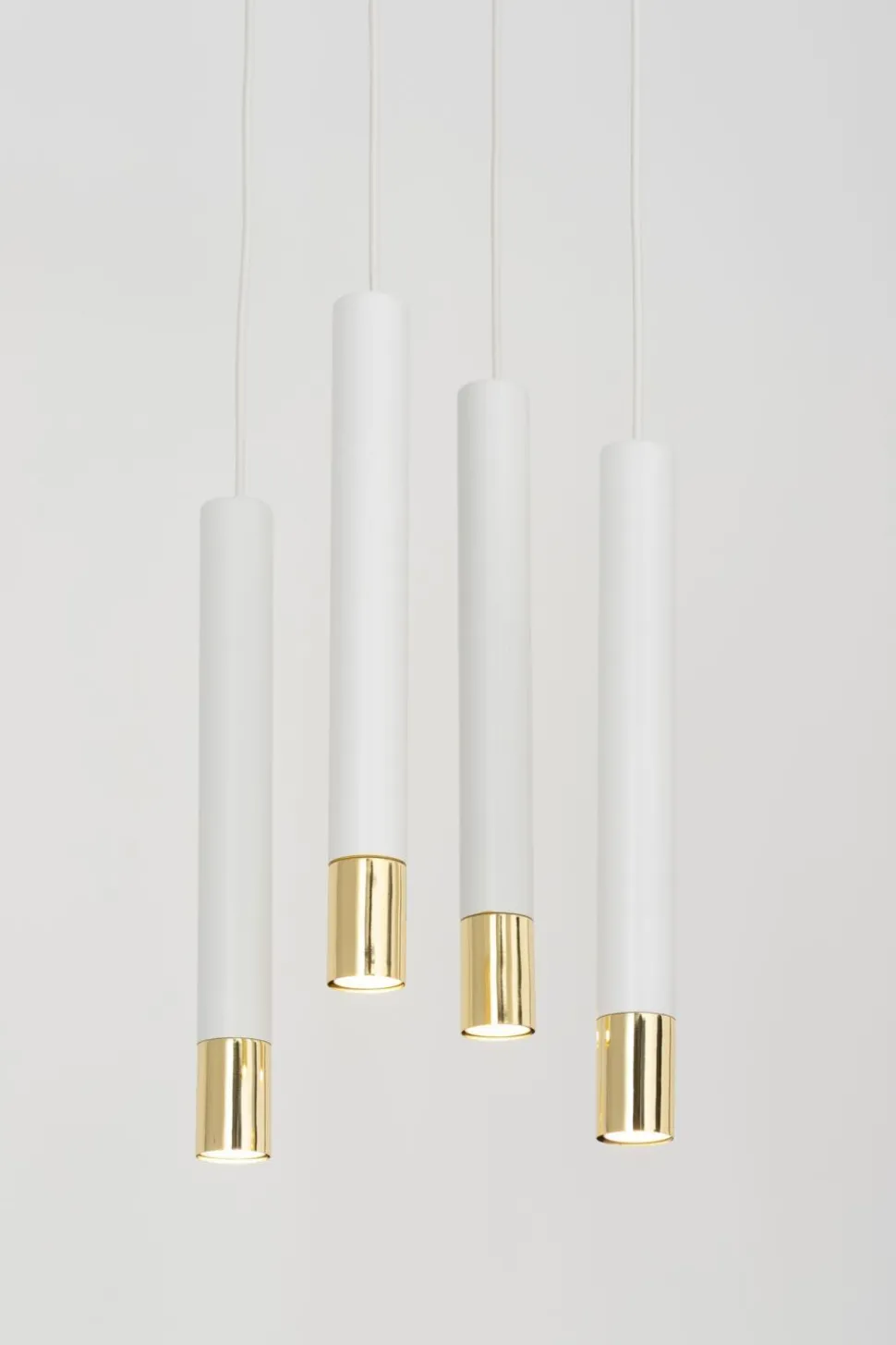 Schmale Pendelleuchte in Weiß und Gold