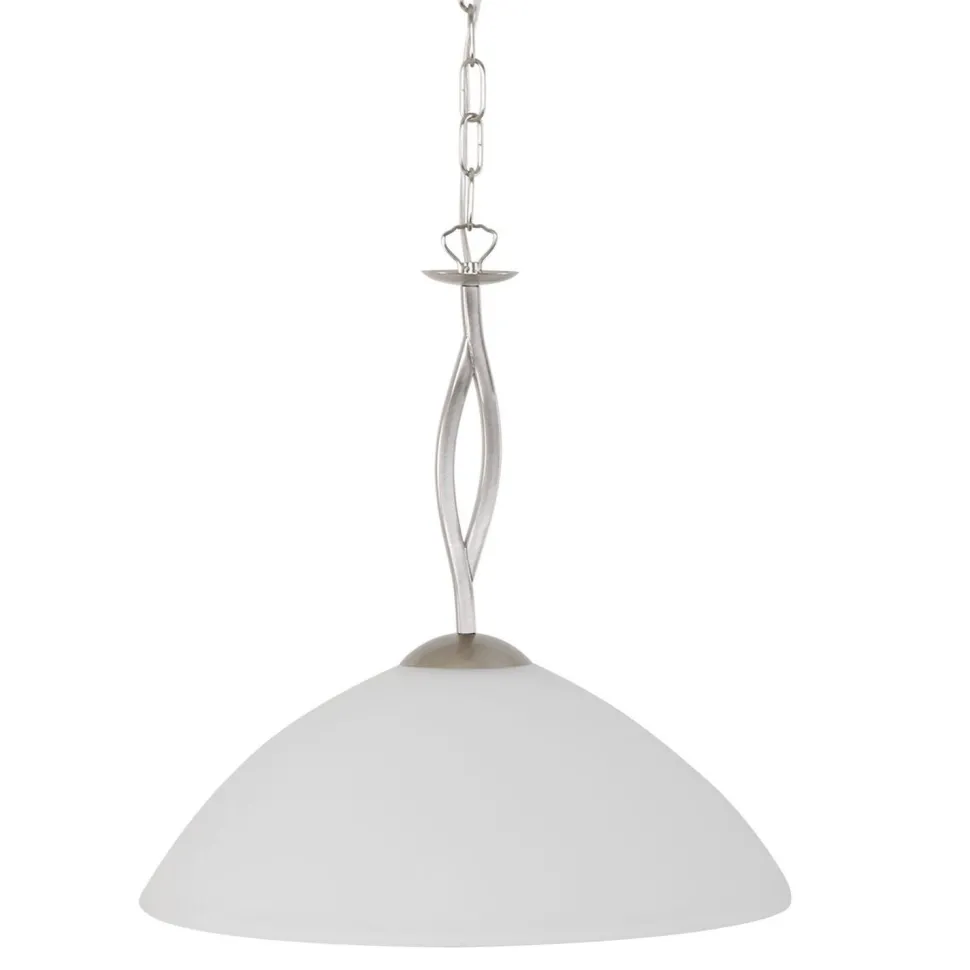 Klassische Pendelleuchte aus Metall und Glas in Stahl und Weiß