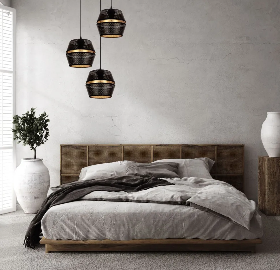 Loft Pendelleuchte aus Metall in Schwarz und Gold