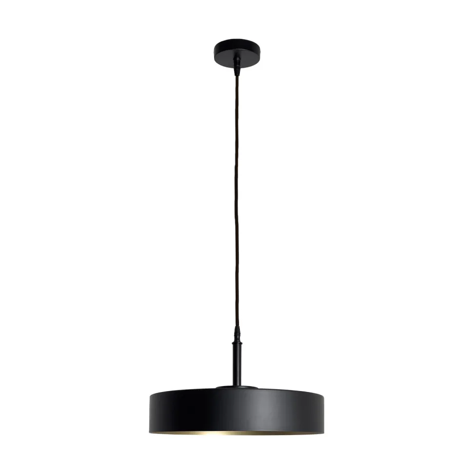 Runde Pendelleuchte aus massivem Messing in Schwarz und Gold