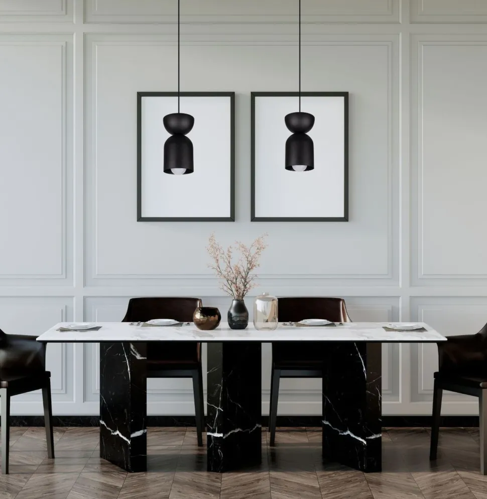 Qualität Made in EU Entdecke die zeitlose Eleganz der Pendelleuchte CAUKO, die mit ihrem minimalistischen Design in Schwarz jeden Raum aufwertet. Mit einem Durchmesser von 110 mm und einer Hängetiefe von 800 mm ist diese Leuchte nicht nur ein Blickfang, sondern auch äußerst funktional. Ob im Wohnzimmer, Esszimmer oder in der Küche – die CAUKO Pendelleuchte fügt sich harmonisch in jede moderne Wohnumgebung ein und sorgt für eine angenehme Lichtstimmung. Der kelchförmige Schirm dieser Pendelleuchte ist speziell darauf ausgelegt, akzentuiertes Licht zu erzeugen, das perfekt für gesellige Abende am Esstisch oder entspannte Stunden im Schlafzimmer geeignet ist. Dank der Verwendung von hochwertigem Metall und der Qualität „Made in EU“ kannst Du sicher sein, dass Du ein langlebiges Produkt erhältst, das sowohl stilvoll als auch robust ist. Die Lampe ist für den Innenbereich (IP20) konzipiert und wird mit 230V betrieben, wobei sie für ein E27 Leuchtmittel bis 60W ausgelegt ist. Die CAUKO Pendelleuchte ist nicht nur eine hervorragende Wahl für Deine Wohnräume, sondern auch eine ideale Lösung für Büros oder moderne Esszimmer. Ihre schlichte, schwarze Farbgebung und das Metall-Design machen sie zu einer vielseitigen Hängelampe, die in jedem Raum zur Geltung kommt. Setze auf Qualität und Stil – mit der Pendelleuchte CAUKO bringst Du Licht und Atmosphäre in Dein Zuhause. Lass Dich von der Kombination aus Funktionalität und Design inspirieren und erlebe, wie diese Leuchte Deine Räume verwandelt.