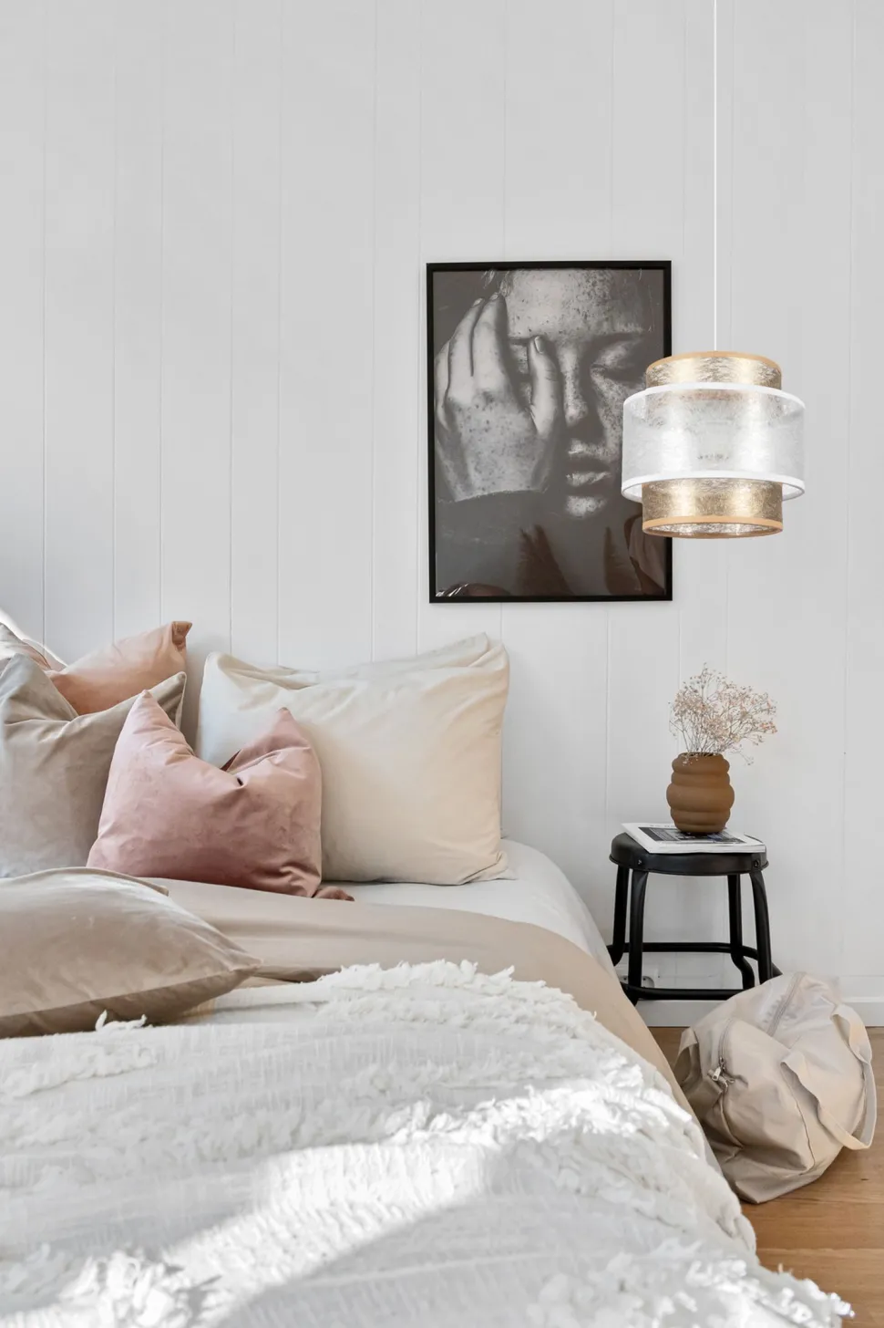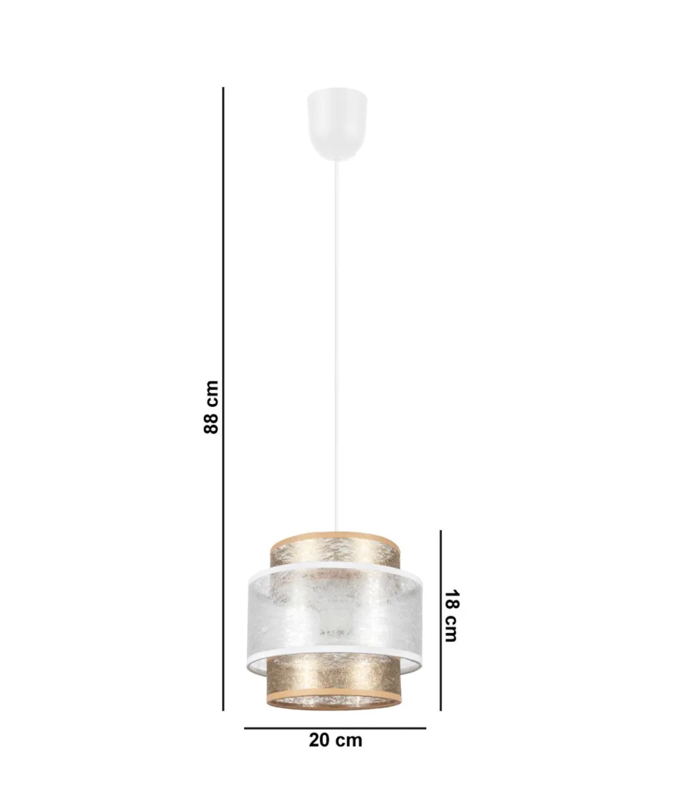 Moderne Hängelampe aus Metall und Stoff in Weiß und Gold