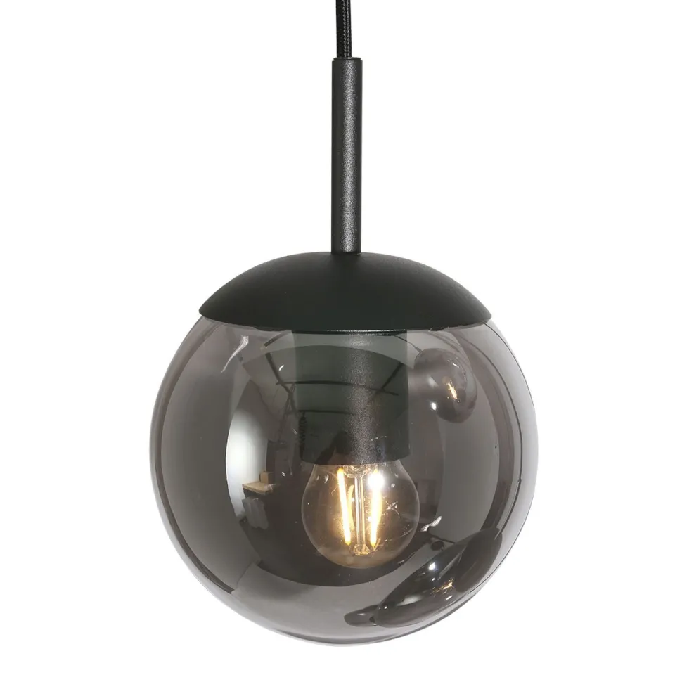 Moderne Hängelampe aus Metall und Glas in Schwarz und Rauchgrau