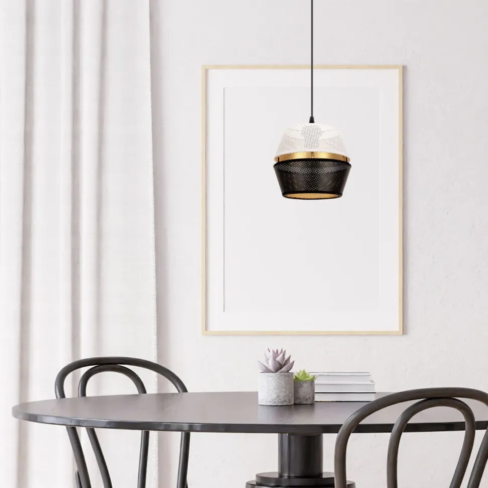 Loft Pendelleuchte aus Metall in Schwarz, Weiß und Gold