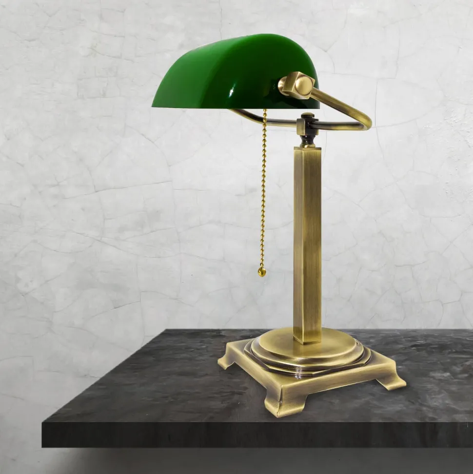 Edle Bankerlampe mit Zugschalter aus massivem Messing und Glas