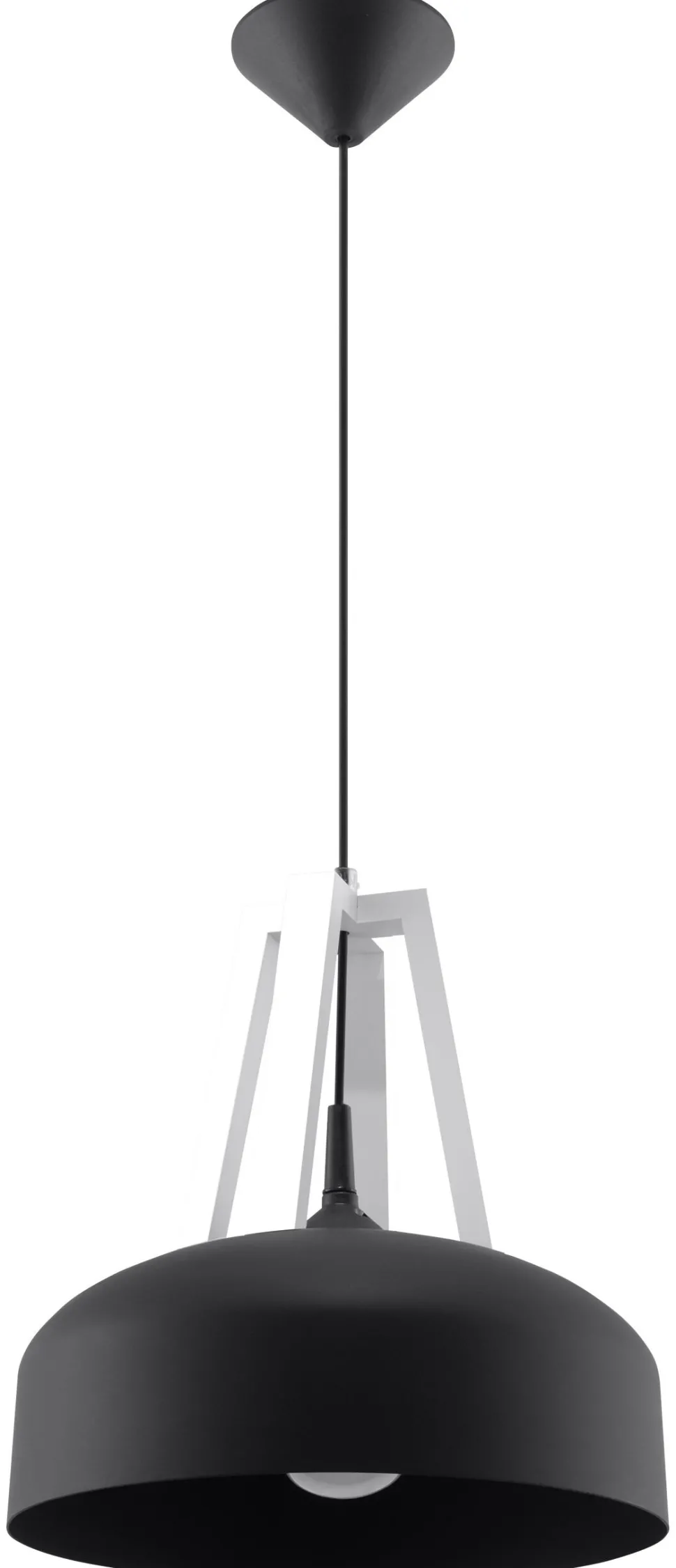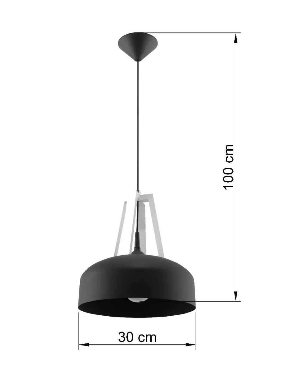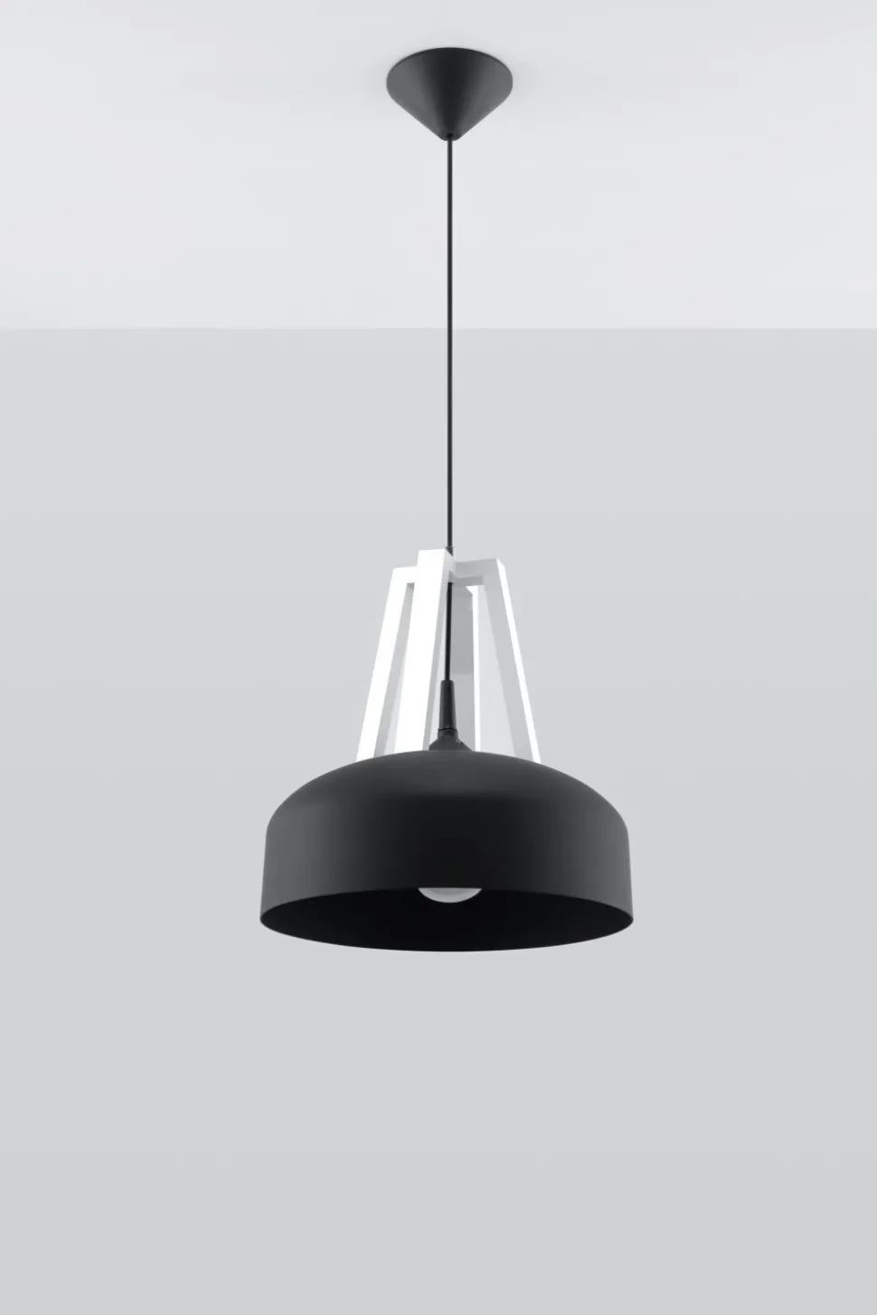 Schwarze Retro Hängeleuchte aus Metall und Holz
