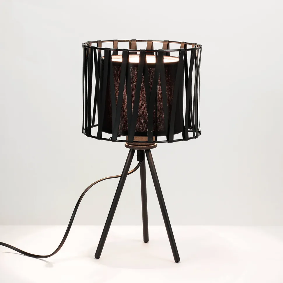 Schwarze Tischleuchte Metall H 35cm Doppelschirm