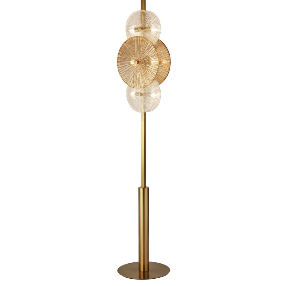 Kunstvolle Stehlampe mit außergewöhnlichem Lampenschirm aus Glas