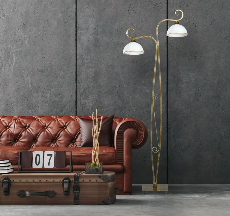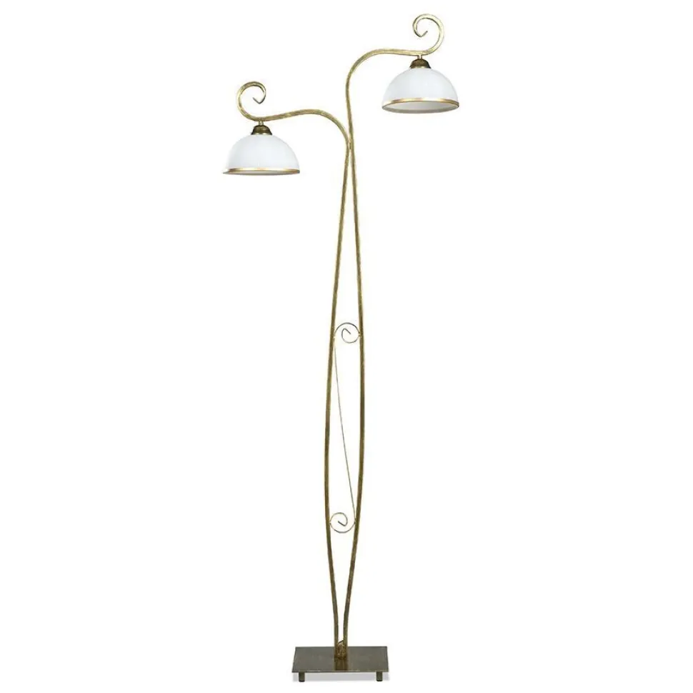 Stilvolle Stehlampe mit zwei Armen in Gold antik und Weiß