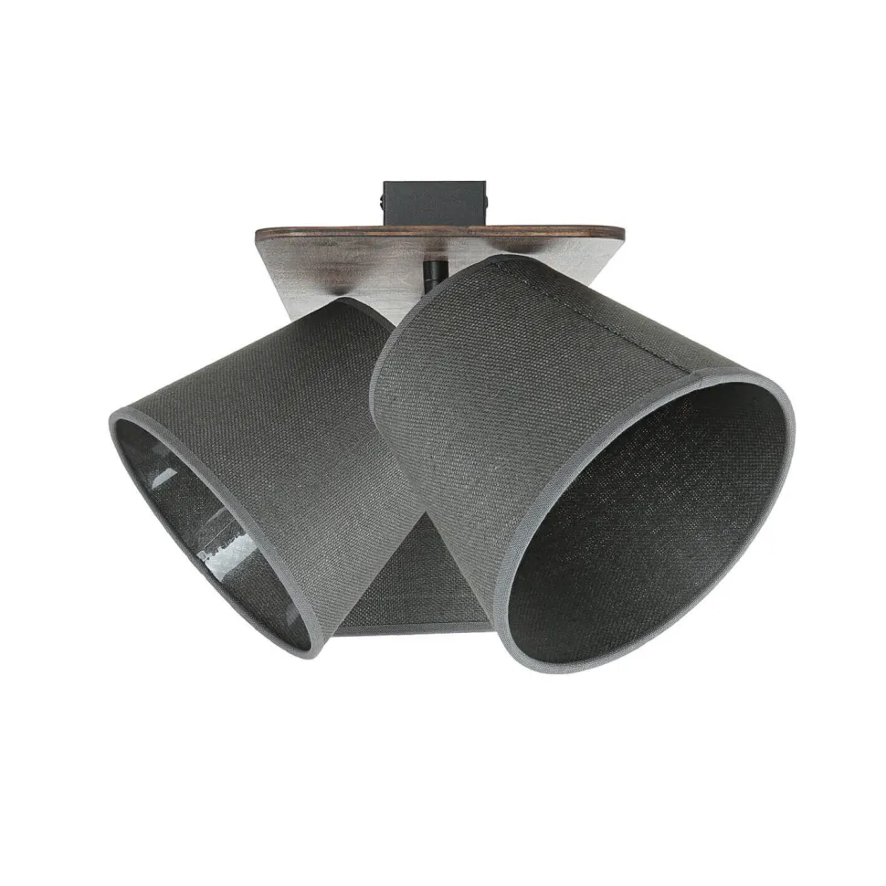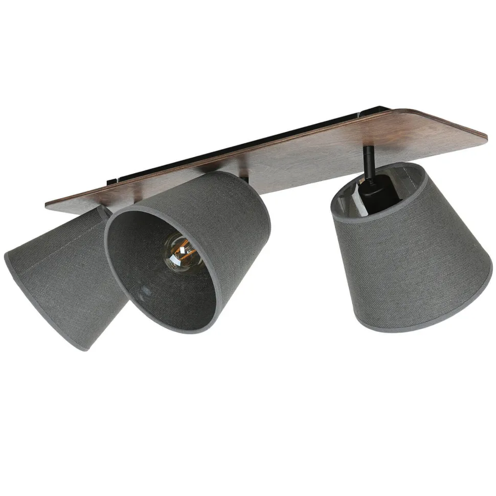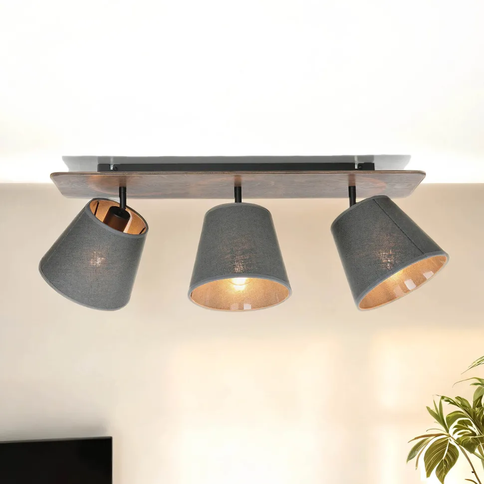 Wohnliche Deckenlampe aus Textil, natürlichem Holz und Metall