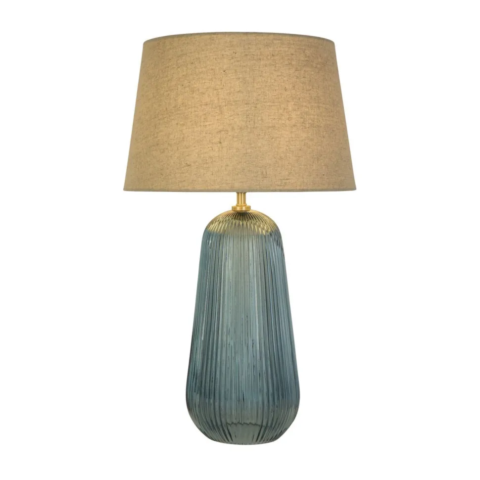 Moderne Tischlampe aus Glas und Leinen in Blau und Natur