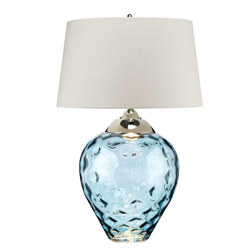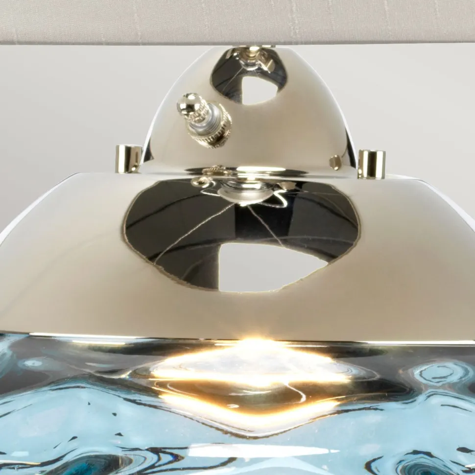 Stilvolle Tischleuchte mit beleuchtetem Sockel aus gefärbtem Glas
