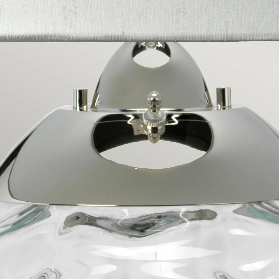 Stilvolle Tischleuchte mit beleuchtetem Sockel aus klarem Glas