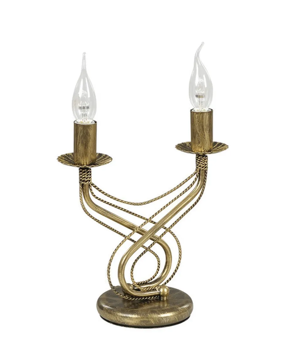 Kunstvoll gestaltete Tischlampe im Stil eines antiken Kerzenhalters