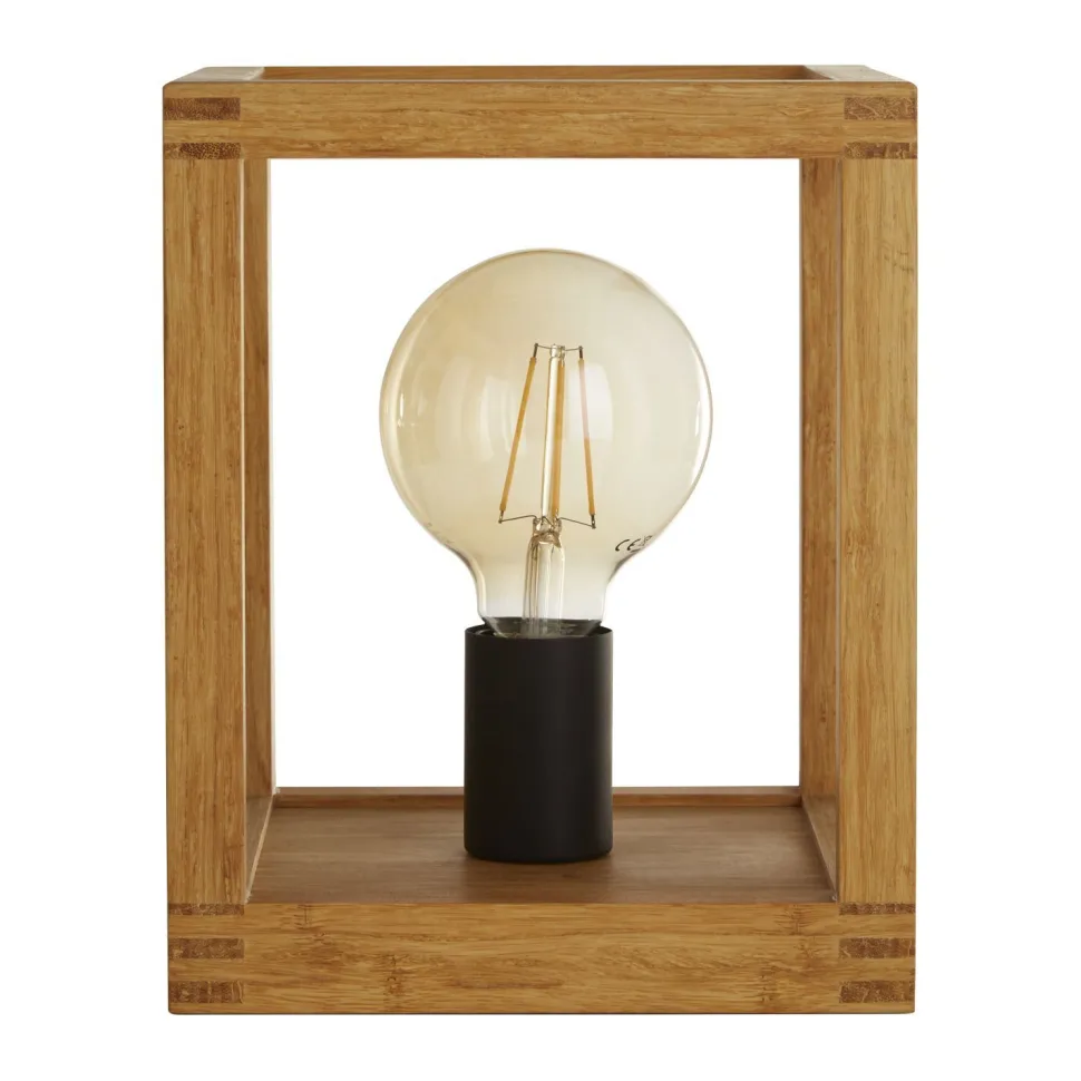 Wohnliche Tischlampe aus Bambus und Metall in Natur und Schwarz