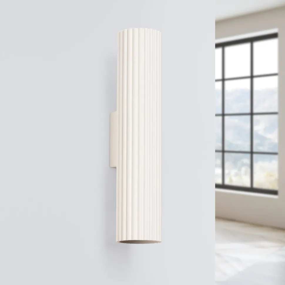 Moderne Wandleuchte aus Aluminium mit besonderem Lampenschirm in hellem Creme