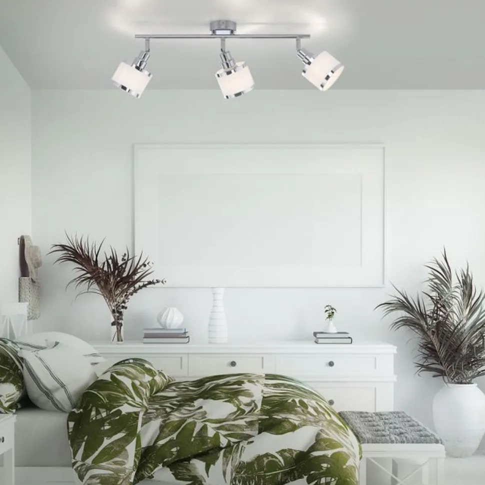 Die weißen Lampenschirme streuen das Licht blendarm für ein gemütliches Ambiente in Wohnzimmer, Schlafzimmer und Flur