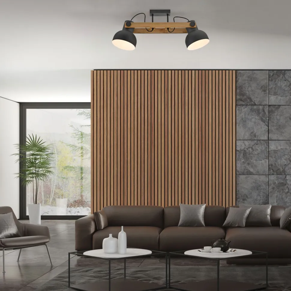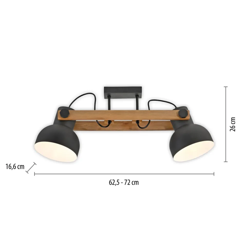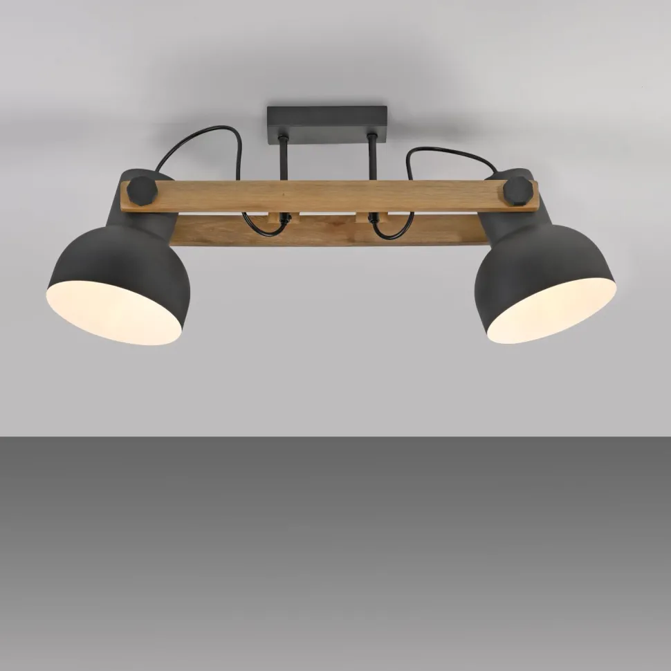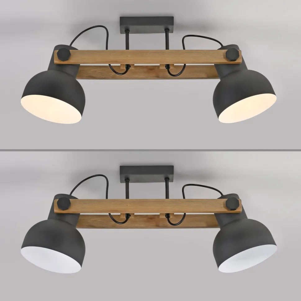 Industrie Deckenspot aus Metall und Holz in Schwarz
