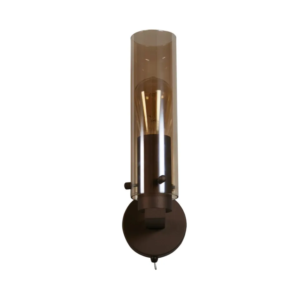 Moderne Wandleuchte aus Metall und Glas in Mokka und Bernstein