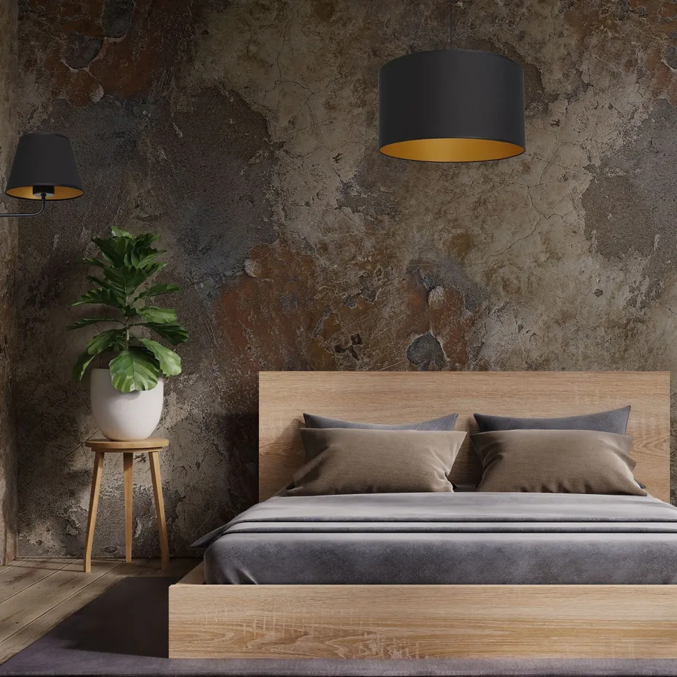 Zeitlose Wandleuchte aus lackiertem Stahl, Stoff und Kunststoff in Schwarz und Gold